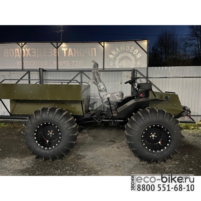 • Габариты вездехода: длина (3850 мм), ширина (1980 мм), высота (1800 мм). Вездеход обшит композитом.